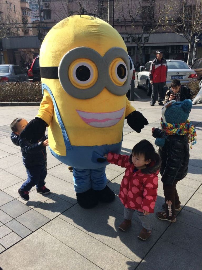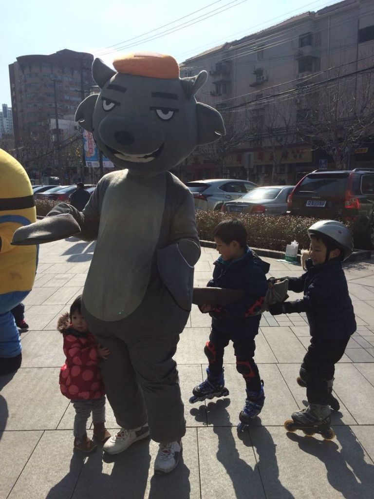 2月1日一大早,志愿者们早早赶赴虹口星星堂购物中心,扮成了喜羊羊、灰太狼以及小黄人等热门可爱的卡通形象。在就近地铁站及周边广场派发宣传单时,他们受到了孩子们的喜爱和追捧,一些路过的外国友人也纷纷来合影留念。听着他们嘴里不停说着“lovely”“cute”,志愿者们心中也觉得美滋滋的。