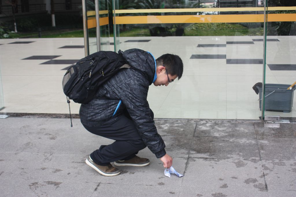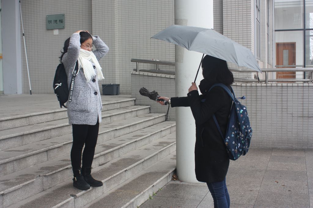 与此同时,在主教,法律学院的志愿者们帮助保洁阿姨一起打扫卫生。扫帚不够,志愿者们就用手捡拾掉落在地上的纸屑、包装袋等垃圾。由于这几天天气状况不稳定,大幅度降温且一直有阵雨,志愿者们自发帮助没带雨伞的同学回寝室,有的是共用一把雨伞,有的是把自己的雨伞借出去,将雷锋精神发扬到底。