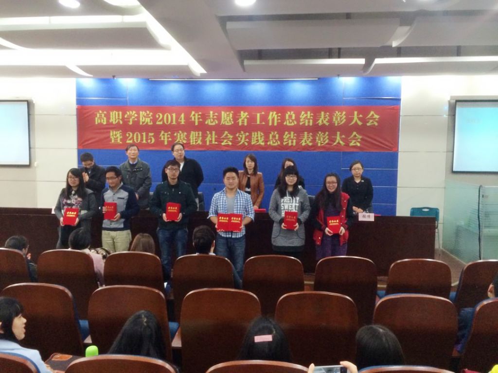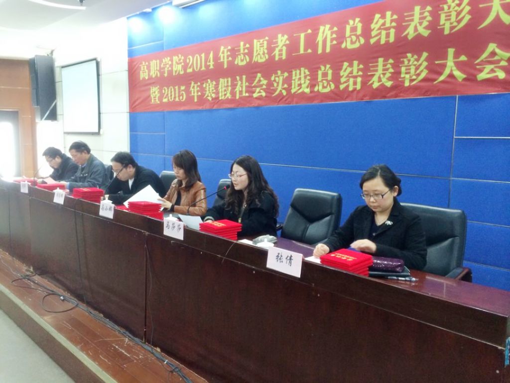 3月24日下午1点30分,高职学院2014年优秀志愿者表彰大会暨2015年寒假社会实践表彰大会在信教122顺利举行。到场的嘉宾有高职学院党总支书记马小娜、校团委副书记蒋存耀、高职学院教师嵇军、辅导员郭平和张倩。大会由高职学院团总支书记马莎莎主持。高职学院大一大二学生参加会议。