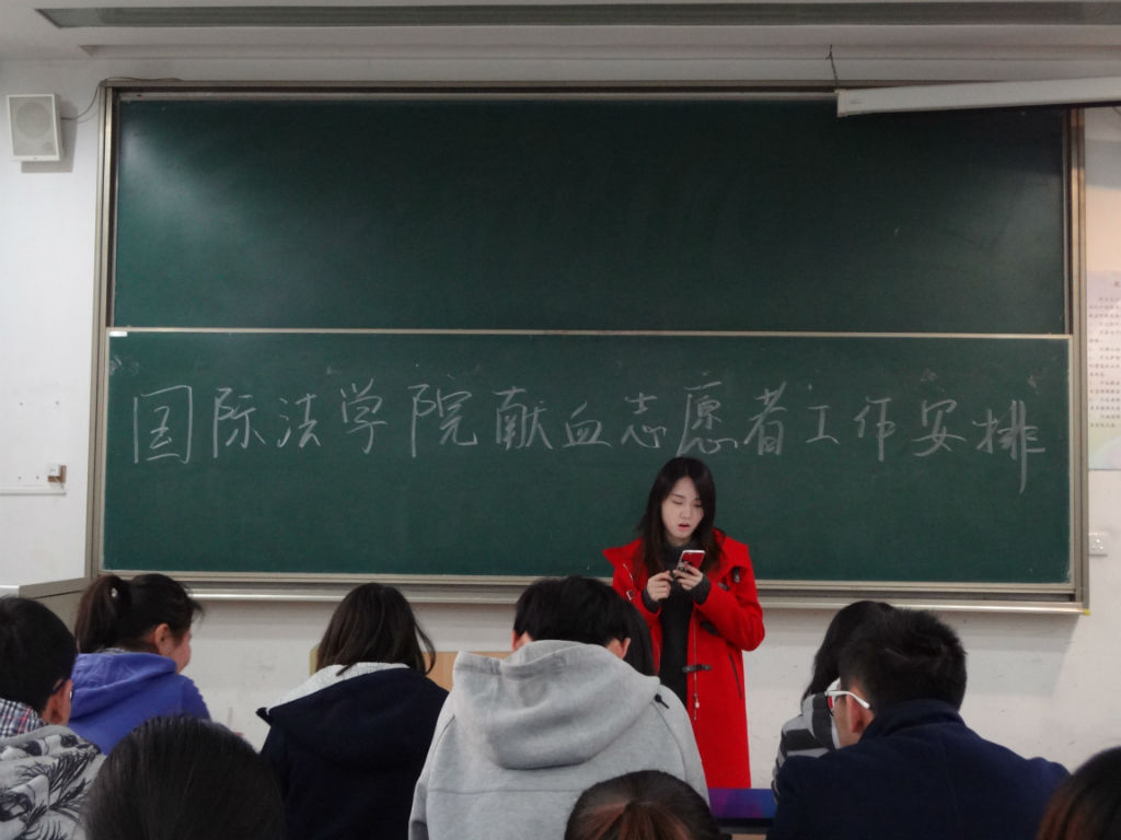 首先,团总支副书记沈珮向大家简单介绍了献血活动的流程,之后她向大家讲述国际法学院志愿服务的相关工作安排。实践部将志愿者分为秩序组、物资组、登记组、志愿者组等,分别负责献血实名登记、维持秩序、物资领取、献血帮扶等工作,采用分工合作的方式为献血的同学提供更全面的服务。在志愿者组中,国际法学院更是采用一对一志愿服务的方式保证每位献血的同学都有志愿者为其服务。