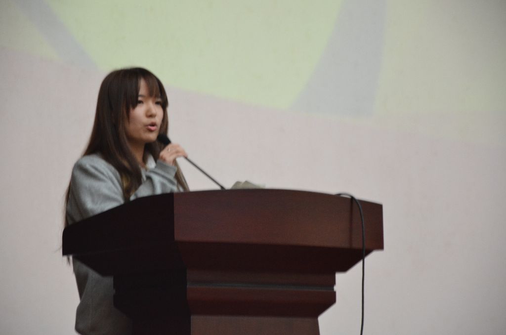 接着,朱清德老师宣读表彰名单。法律事务1332班、商务英语1331班荣获学风建设先进班集体称号,姚启男等9名同学获得特殊奖学金,石旭蓉等24名同学荣获学风建设先进个人荣誉称号。在激昂的音乐声中,获奖学生分批上台领奖。他们脸上洋溢着喜悦。为促进交流,学生建设先进班集体代表阮捷、学风建设先进个人魏佳佳、星光计划系列竞赛参赛者徐蓓依三名同学依次上台讲述了自己在大学学习时光中的经历、体验和感悟。他们精彩的发言博得了台下阵阵掌声。