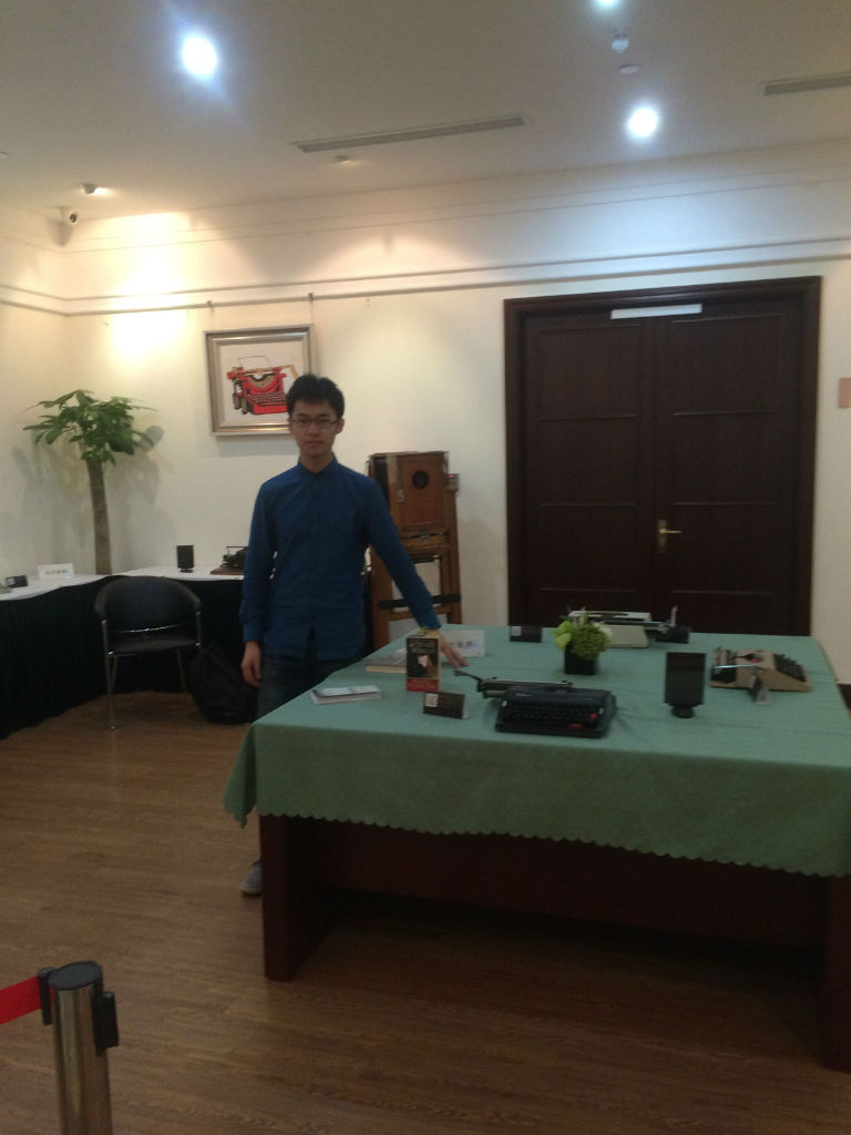 2015年4月26日,本人应新利18官方客服外国语学院联合古北市民文化中心开展的一系列志愿者活动,利用周末时间来到古北市民文化中心,担任打字机展览解说员。