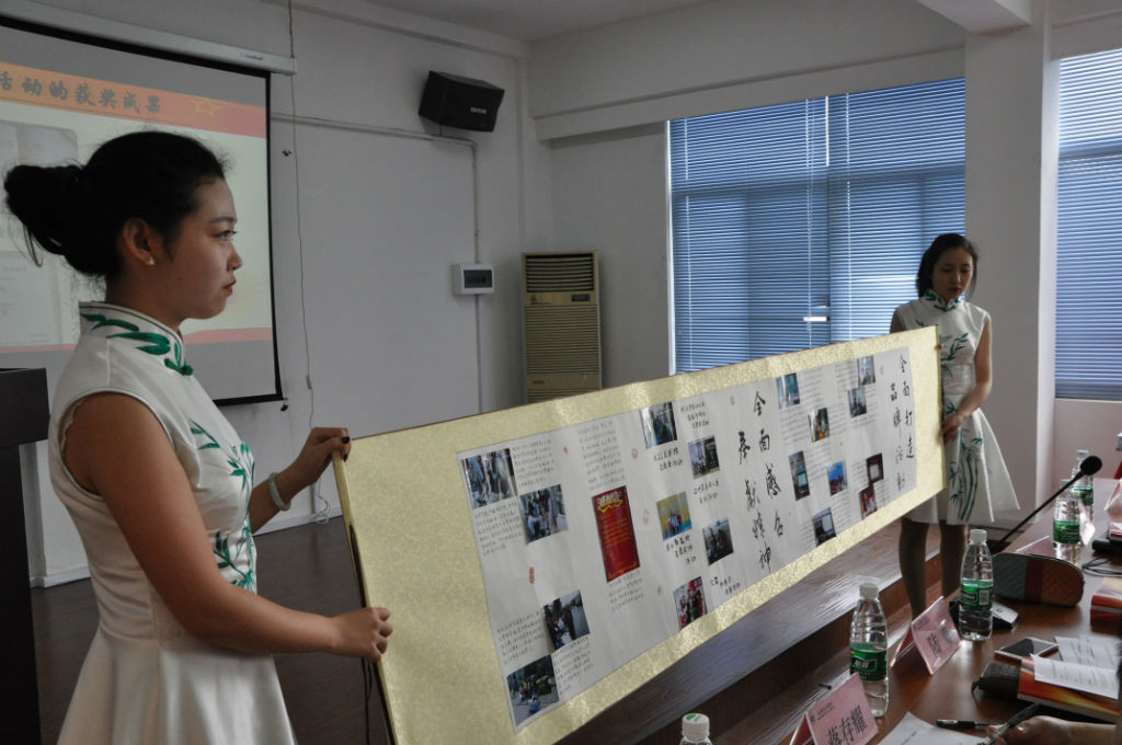 在答辩过程中的展示交流环节,各团总支并通过PPT、视频、照片等方式围绕“基础平台建设”和“特色活动的开展”深入阐述了过去一年的共青团工作理念与思路、工作开展总体情况、基层组织建设和特色活动等, 同时在组织建设、宣传建设、社会实践活动及青年志愿者、校园文化建设、科技创新建设和社团工作等方面做了丰富精彩的展示。各学院分管工作领导及团委、团总支老师评审根据各团总支的答辩内容,进行了相应的提问,各团总支也对提问进行了深入的分析和解答。在激烈的答辩过后,经过评审,最终社会管理学院团总支获得“2014—2015学年新利18官方客服五四红旗团总支”的称号,经济管理学院团总支、刑事司法学院团总支和国际法学院团总支获得“2014—2015学年新利18官方客服五四红旗优秀创建单位”的称号。(摄影/撰稿:肖瑶)