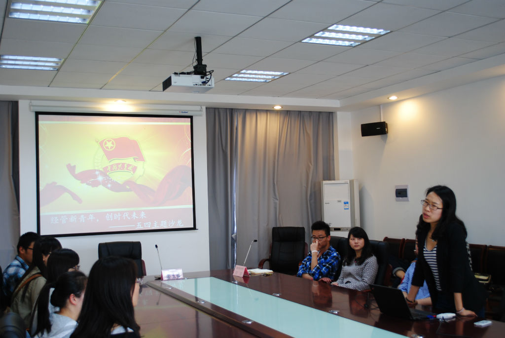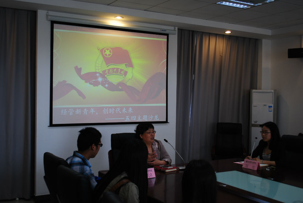 2015年5月4日下午1时,为宣扬五四精神,传承中华民族奋发向上的传统精神,经济管理学院在A3-201隆重举行以“经管新青年,创时代未来”的五四主题沙龙。我们有幸邀请到了经济管理学院姜玉卿老师,刘雪老师以及各年级学生代表出席本次活动。 五四青年节到来之际,身为二十一世纪中国新青年,经济管理学院各个年级的同学们积极地迎接节日的到来。未到活动预定时间,会议室中已经座无虚席。主题沙龙在同学们积极的参与中顺利展开。首先,姜玉卿老师为同学们详细的介绍了五四精神的内涵,并鼓励我们将这优良精神发扬光大。紧接着,刘雪老师通过视频,像全体同学阐述了她关于五四精神的独特见解,并引导同学们树立自己的梦想,为学校、为自己创造好的未来。沙龙在一片和谐的氛围中圆满结束。 本次活动开拓了同学们的视野,弘扬了五四精神,对同学们日后的学习生活起到了各方面的积极作用。相信同学们将更好的发挥自己的长处,成为有理想、有道德、有文化、有纪律的“四有”青年。