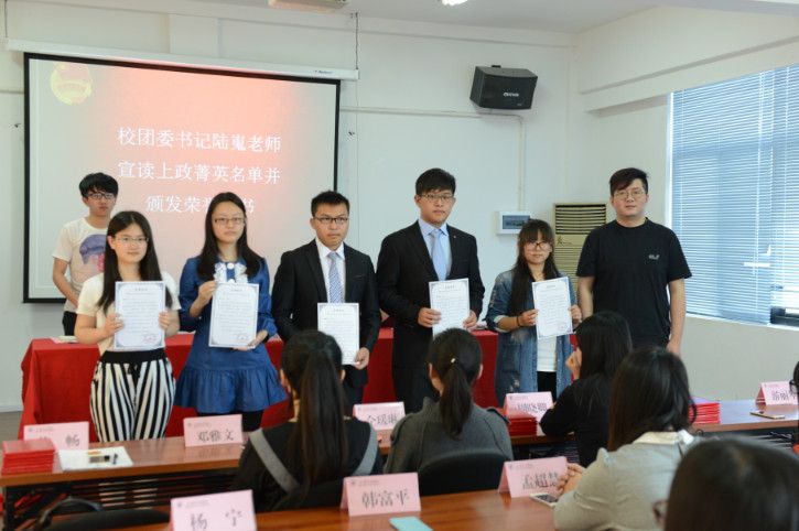 结业仪式在奏唱《中华人民共和国国歌》和《中国共青团团歌》中拉开了帷幕,校团委副书记蒋存耀老师总结了第七期团校的基本情况。第七期团校的成长和发展离不开老师和全体学员的积极配合,他希望学员们可以将在团校中学到的知识运用到平时的生活和学习中去。接下来,校团委副书记蒋存耀老师宣读了准许32名学员结业的决定,领导为学员代表颁发结业证书,接着,校团委书记陆嵬老师宣读上政菁英名单并为他们颁发荣誉证书。随后,学员代表谢阳蓉同学发言。她表示在团校提升了自己的能力,给了自己更大的展示平台,增强了自身对团的归属感。最后,校团委书记陆嵬老师发表讲话。他首先强调了团校老师对第七期团校的重视并对全体学员的表现给予肯定。同时他指出,通过这段时间在团校的学习,学员们都获得了一定的知识和经验,但希望学员们可以开拓自己的事业,在更好的平台实现自身价值。并希望学员们能不负所学,肩负起在广大共青团员中传递正能量的光荣使命。