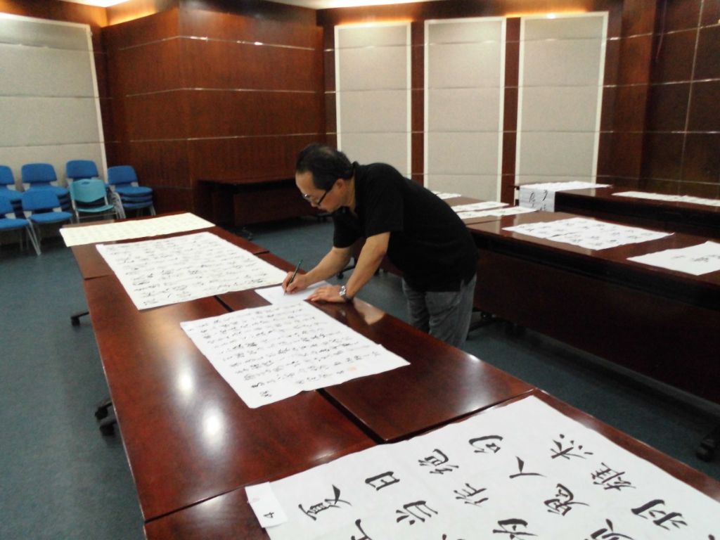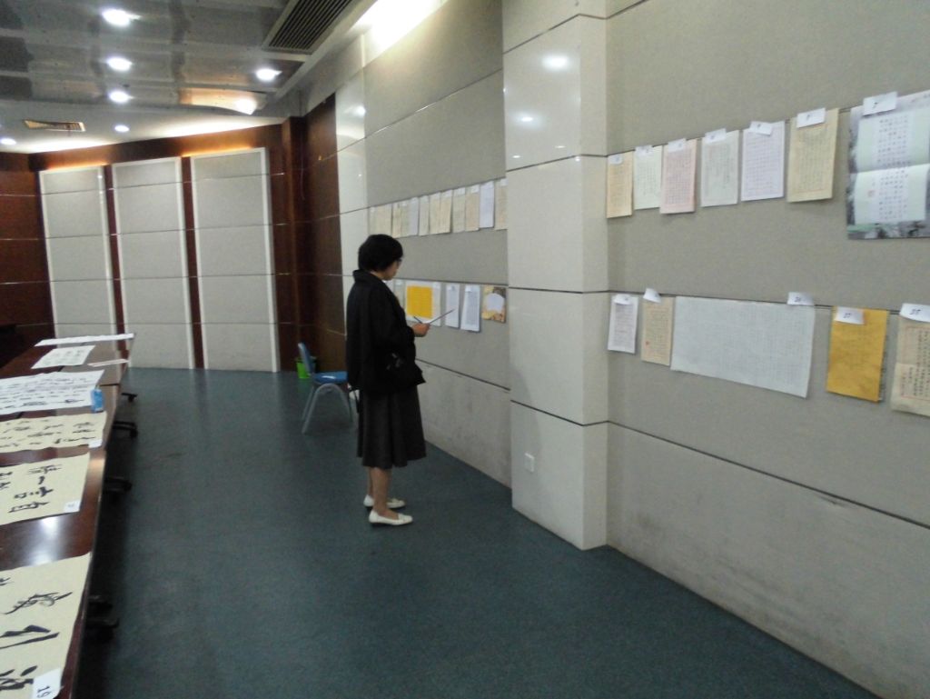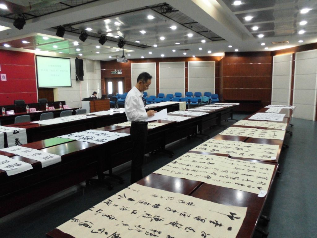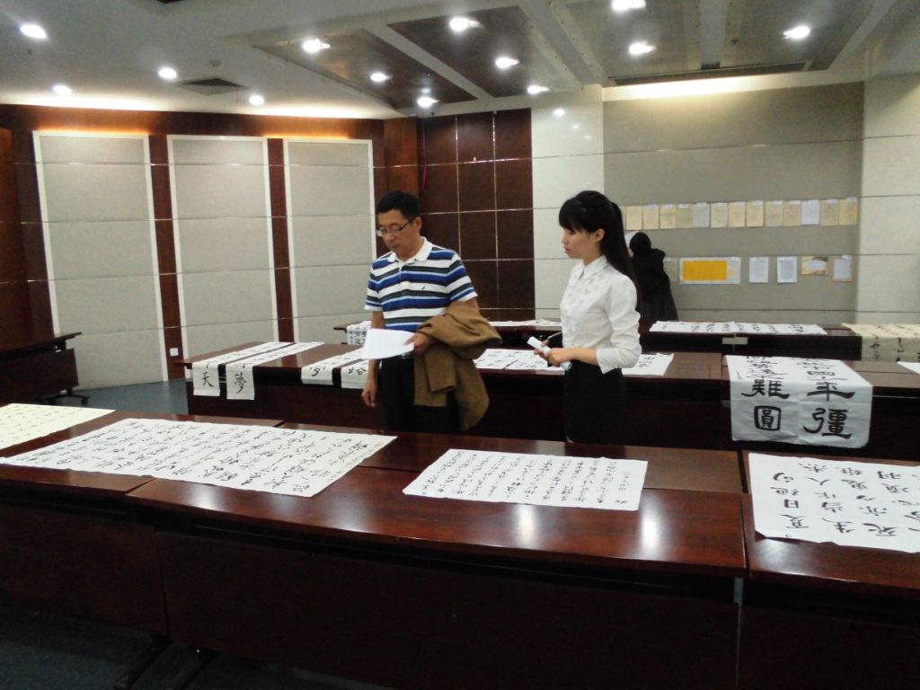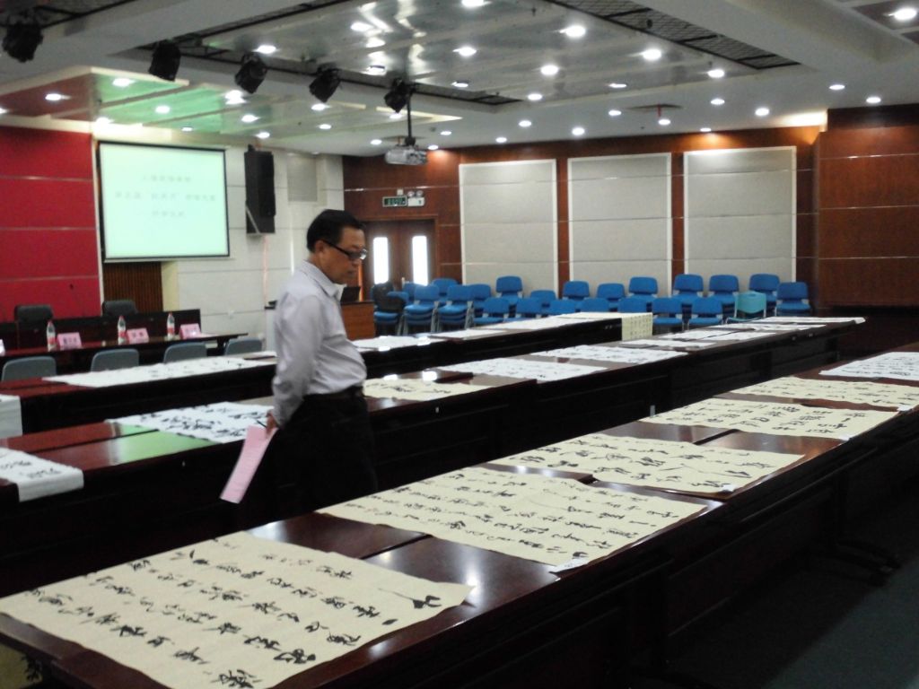 新利18官方客服第五届“红五月”书法大赛暨书法作品展于2015年5月19日在信教101举行作品评审仪式。本次活动由教务处语言文字工作委员会、校团委、图书馆主办,翰墨香书法社承办。并邀请了文学院院长戴元光教授,图书馆馆长毕秀水教授,文学院谈青教授,教务处陆小平老师、张彩英老师担任此次大赛的评委,评委们秉持公平公正的原则,对参赛作品进行了认真细致地点评和评审。