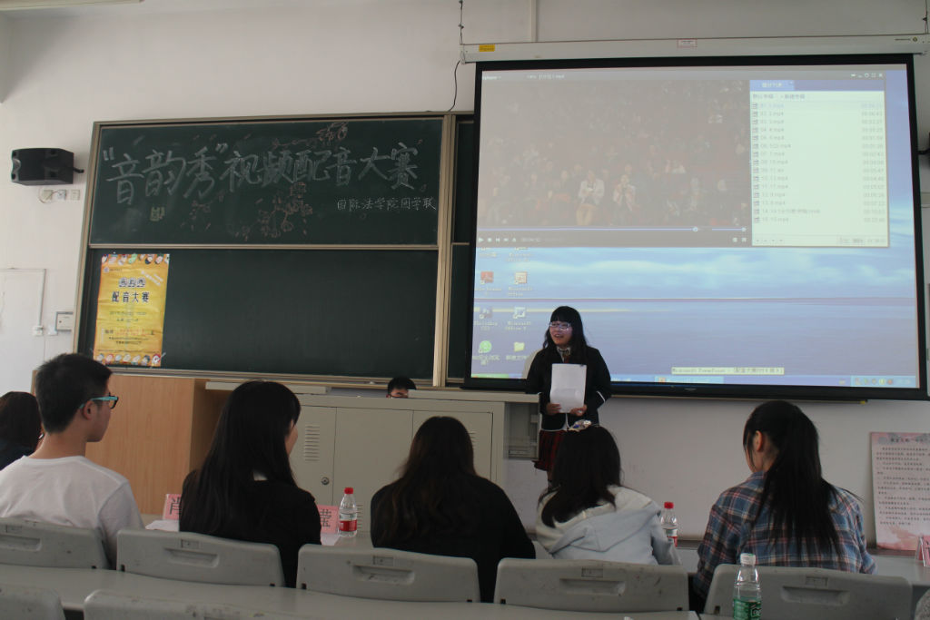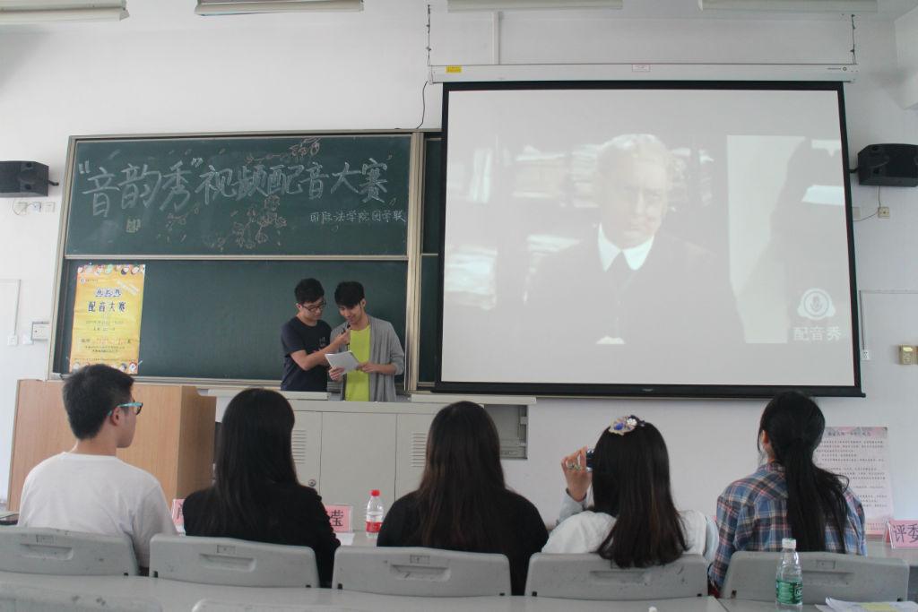 2015年5月12日,新利18官方客服第三届校园文化艺术节之国际法学院“音韵秀”视频配音大赛在主教401B举行。比赛特别邀请新利18官方客服鹿鸣社社长和鸿鹄剧社核心成员担任比赛评委,活动吸引了全校范围内众多对配音感兴趣的同学前来参加,同时也有不少的观众到场为参赛人员加油,观看精彩比赛。本次比赛采用评委点评和现场观众投票的形式选出表现出色的团队进行嘉奖。