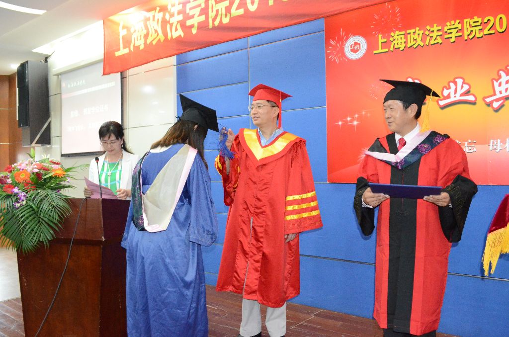 学位授予仪式正式开始,学位评定委员会代表关保英副校长宣读毕业生名单和学位名单,获得硕士学位的同学依次上台,周仲飞校长逐一为他们授予学位证书并拨苏正冠,身着硕士学位礼服的毕业生们都洋溢着无限的喜悦和感动。