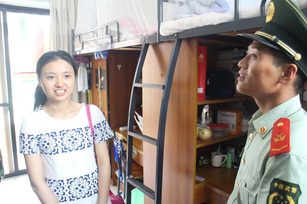 2015年7月4日下午,受国际法学院邀请,四营十连教官在国际法学院团总支书记唐胜楠老师的带领下来到学生宿舍,通过指导整理内务向同学们展示军队的严明纪律,督促同学们养成良好的生活习惯。