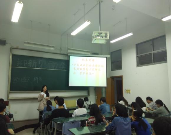 这次活动由金雪婷同学主持,见面会主要由主持人介绍社团历史、介绍上一年社团所组织的活动、互动答疑、社长致辞等环节组成。大家在互动答疑环节表现的非常活跃,询问了许多关于社团举办的活动情况,以及一些关于英语学习的问题等,主持人金雪婷同学以及我们的社长刘丽莹都热情地为他们一一解答了困惑,气氛也十分融洽。然后在社长致辞中我们的萌萌哒社长刘丽莹首先表达了对于同学在下着大雨的情况下仍然赶来见面会的感谢,然后对社员更加深入地解释了我们社团的情况,以及介绍了英语社会对同学们的英语学习以及结交兴趣相投的伙伴以及其他方面产生的帮助,另外社长也为我们分析了当前的就业形势以及英语对就业的重要性,更重要的是她为大一的新同学敲响了警钟,也提醒了我们要为未来的就业做好规划,我觉得这也是见面会带给同学们最大的收获。社长致辞结束后见面会也圆满 结束。