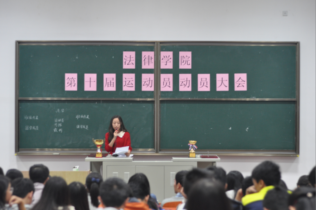 10月15日晚,法律学院在B4-102召开了法律学院运动会动员大会,法律学院团总支书记李语熙、全体运动员、裁判员、团学成员及部分班委出席会议。会议由体育部干事彭晓珺主持。