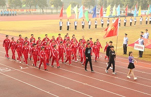 开场式是各个学院的队列入场,整齐的队伍,矫健的步伐,迎接着这次充满激情与挑战的运动会。比赛过程中,每位参赛者都为了自己的目标和院集体的荣誉而拼搏着。伴随着看台上同学们“经管,加油!经管,加油!”一浪高过一浪的加油助威声,“更高,更快,更强”的运动精神成为了经济管理学院每位参赛者的信念。团结互助,积极拼搏的集体荣誉感在此时被体现的淋漓尽致。同学们都发扬友谊第一,比赛第二的作风,从而充分的感受到了运动的乐趣。经过运动健将们在铅球比赛、跳远比赛及各项田径比赛中的积极参与,经济管理学院表现不俗,个人项目中周越同学、庞雨嘉同学分别获得女子跳远第三名及第五名的好成绩,洪达棋同学获得男子1500米第四名,团体项目中,男子4乘100米荣获第五名,女子4乘100米更是夺得亚军!
