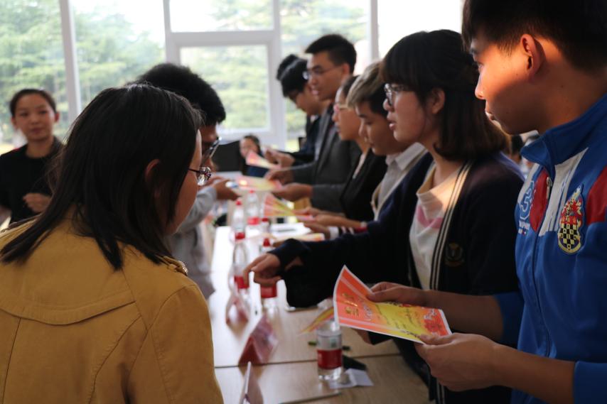 11月10日下午14:00,国际事务与公共管理学院于易班体验馆举办了抗战胜利70周年主题演讲比赛。校党委宣传部王婉妮老师、国务学院辛方坤老师、学生会主席李纯同学、团总支副书记石东艳同学、学生会副主席魏宏达同学、学生代表唐圣玮同学以及赵桢同学担任此次演讲比赛的评委。