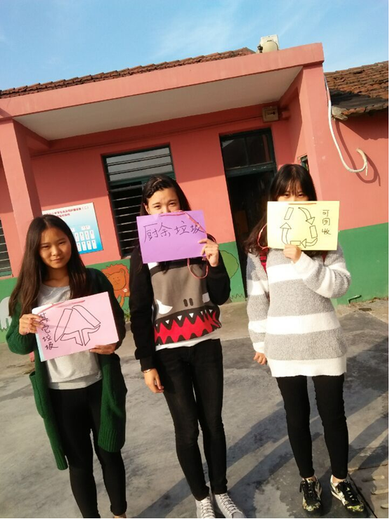 其次,绿联和国务社会实践部的成员们以情景剧的形式。由志愿者们扮演“其他垃圾桶”、“可回收垃圾桶”、“有害垃圾桶”、“厨余垃圾桶”,将画有果皮、瓦片、废电池、过期药品、废报纸、旧水瓶、纸巾、鱼骨头的图片的卡片根据垃圾的分类一一对应的拿在手里,形象地来向小朋友们演示垃圾分为几类、哪些是一类的。将卡片打乱顺序,随机叫几位小朋友上讲台将老师给予的卡片给挂有对应“垃圾桶”牌子的志愿者们。