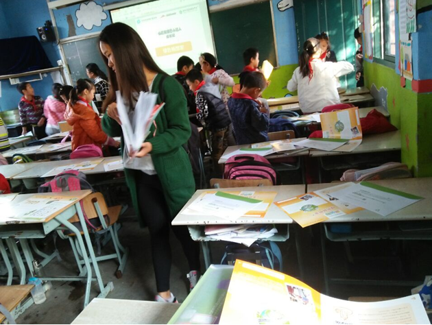 首先,绿联的志愿者们发放与课程有关的材料并且带领小朋友们回顾了上期关于能源的知识。绿联志愿者们已选择题的形式罗列出题目,带领小朋友们一一回答,以最后一题“沼气发电”将话题引到垃圾上,并由此引出这节课的主题——垃圾分类。