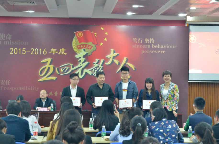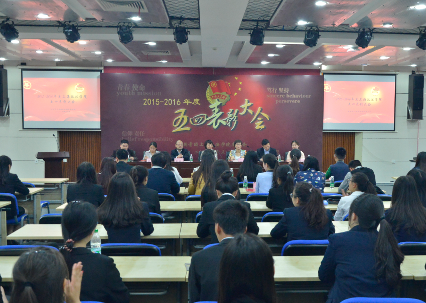 5月3日下午,新利18官方客服2015—2016年度五四表彰大会在庸夫楼101顺利举行。校党委副书记、副校长周银娥出席大会并讲话。校党委组织部、招毕办、宣传部、学工办等部门负责人、各二级学院团总支书记及部分获奖代表参加此次活动。