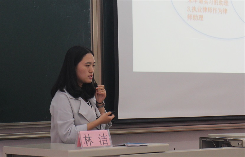首先由国际法学院张陶然老师介绍两位主讲人,并发放课堂试卷。随后姜曙滨律师为大家说明行仕律师事务所的性质,分析上海律师行业的现状。律师通过与同学们的互动,分享了如何做一名律师、律师服务大市场现况等信息,也说明了刑辩律师的地位、基本工作、基本素质、具体案例以及刑辩律师助理应该做的工作,并分析法学学生的就业前景。随后陈洁律师为大家解答了司考对就业方向是否必要以及作为律师助理应该如何考虑工作方向和工作要求等问题,并提醒同学们在以后学习中的注意事项。