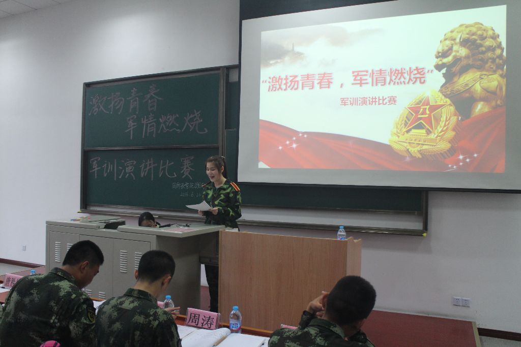 经过同学们自己踊跃报名,来自院内5个排共有12名选手参加了本次演讲比赛。同学们带着自信轮流上台发表演讲,尽情畅谈自己在军训过程中的体验和感悟。选手激情高昂的演讲博得了同学们一阵阵热烈的掌声。所有选手发言完毕后,由教官代表上台发言,他表达了对同学们的殷切期望,希望同学们能够把在军训中学到的东西运用到生活中去。接着,张顺芳老师进行了活动总结,她对每一位参赛选手做出了详细的点评,并表示本次活动具有重要的意义,一方面它不仅增强了同学们的国防意识,对于军旅生活有了自身的感悟,另一方面提高了同学们演讲的水平。