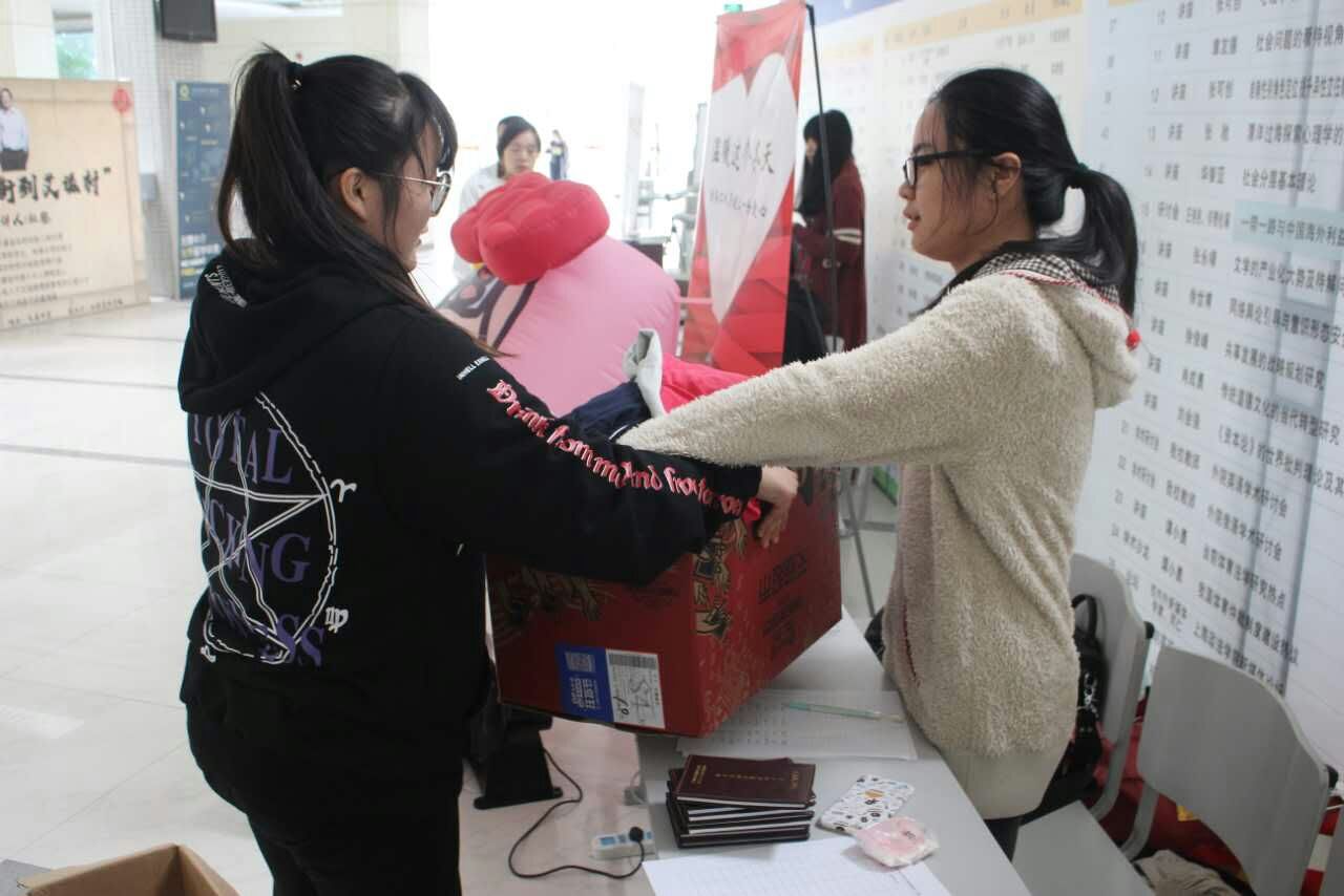 2016年11月15日中午11:30,由新利18官方客服经济管理学院社会实践部发起的“益路有你,爱心‘衣’旧”爱心衣物捐赠活动在庸夫楼一层大厅顺利举行,我院学生踊跃参与,截止到活动结束共计收到爱心衣物500余件。