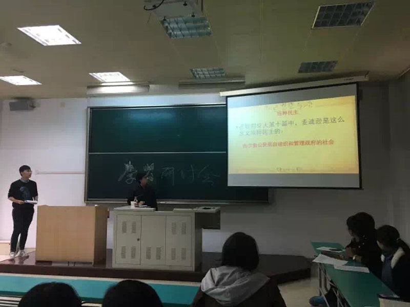 11月8日的下午,人调1641的同学们和邱之岫老师、申迪老师一起组织了一场宪法学习研讨会。同学们轮番上台的分析论证质疑,为我们点燃了1787年联邦党人笔锋下美国民主的星星之火,叩问了《政府论》中自然法学之于当下的意义,分享了法学学习中的迷茫却又不懈的求知探索。在这融融氛围里,法学给我们以逻辑中的美感,哲学中的思辨,秩序带来的文明。让我们即使是万千浅薄法学生中的微毫,也感染于法学学习带来的思维习惯和对理性的追求,在这种信息爆炸的时代,能少些盲目的愤怒,多些冷静的思索。