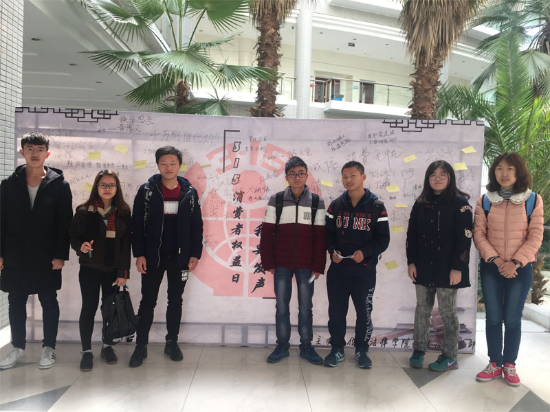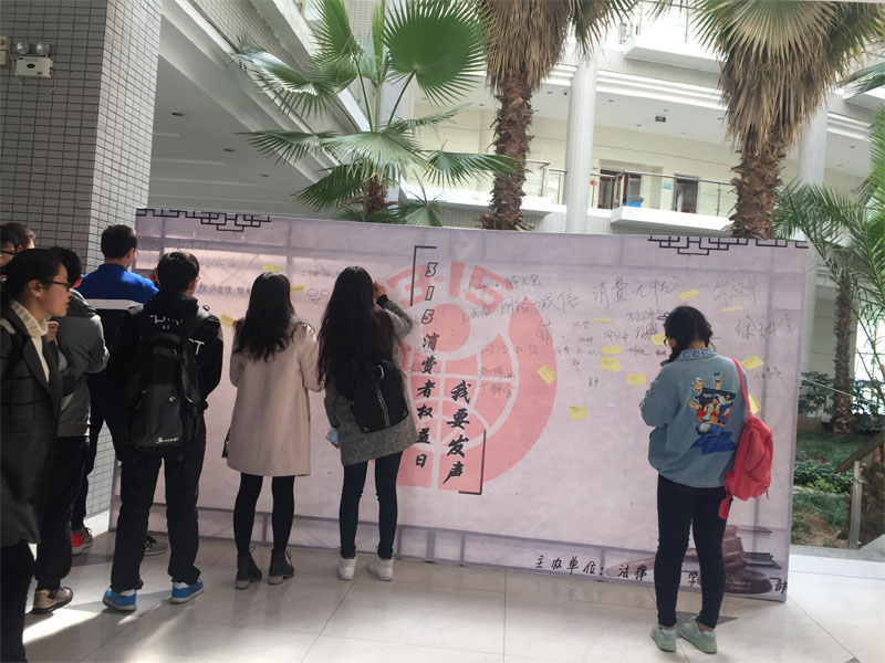 2017年3月15日11:35,由法律学院学术部主办的315消费者权益日“我要发声”活动在庸夫楼一楼顺利开展。