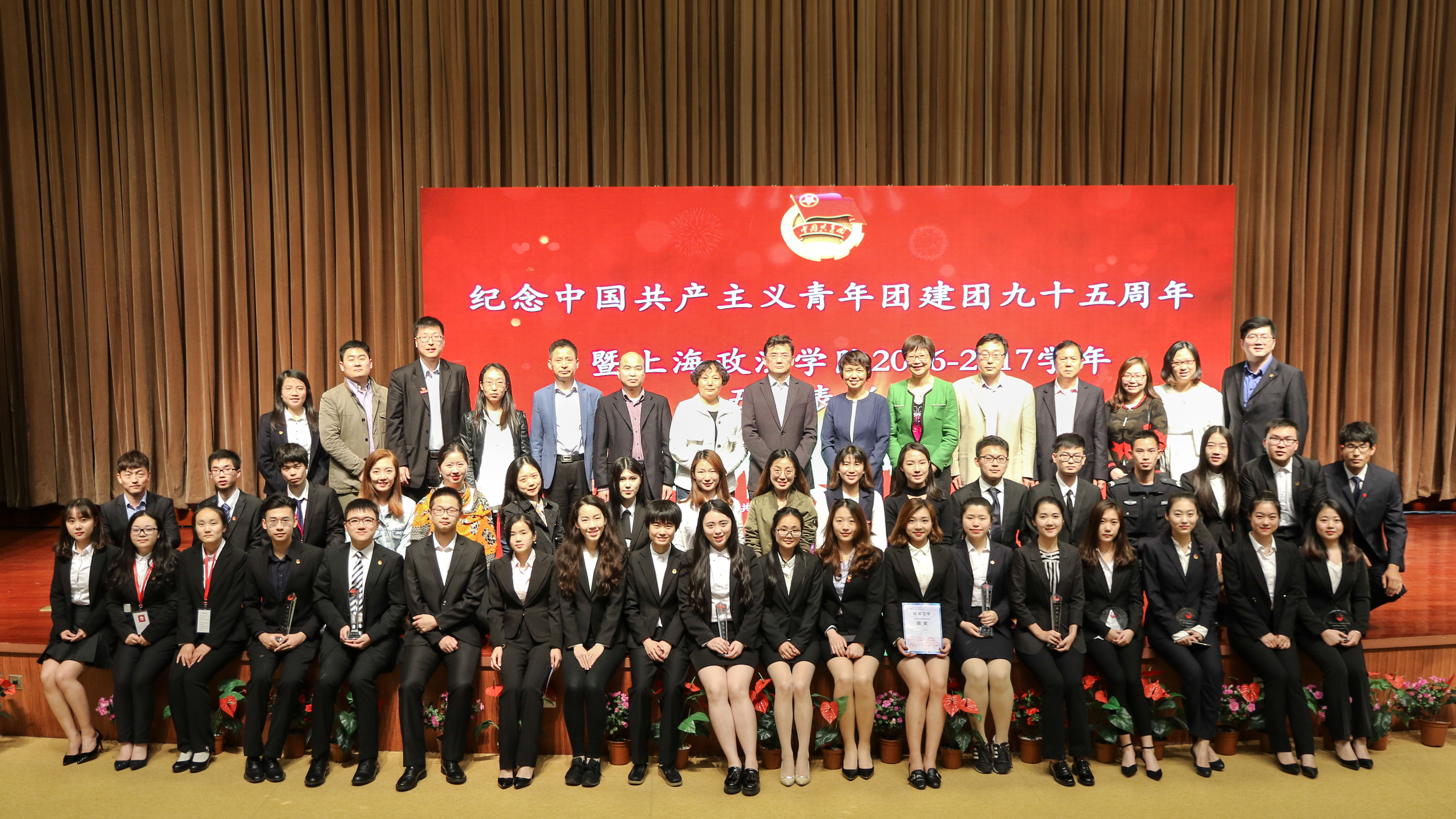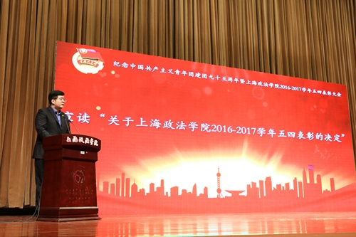 值此中国共产主义青年建团95周年华诞来临之际,5月2日下午,我校在天马讲堂隆重召开2016-2017学年五四表彰大会。校党委书记杨俊一,校党委副书记、副校长周银娥,组织部、学生处、教务处、招就办、团委等职能部处负责人,以及各二级学院的党团工作负责人出席本次会议。会议由校团委副书记朱慧博主持。