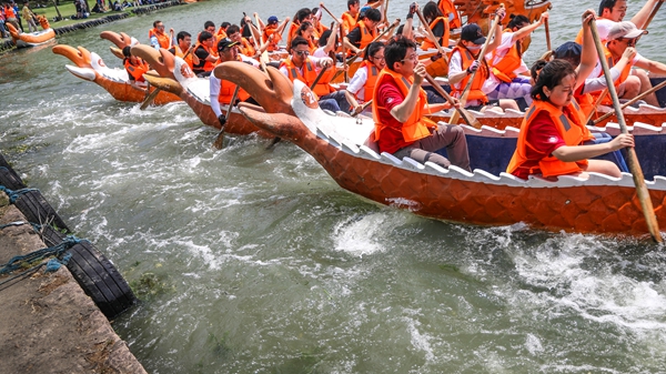 本次师生龙舟大赛的举办,传承和弘扬了中华民族传统文化,为广大师生搭建了互动交流平台,也展现了我校师生团结拼搏、勇往直前的良好精神风貌。(孙文逸撰稿 翟贝尔、张峥言、唐笑语等摄影)