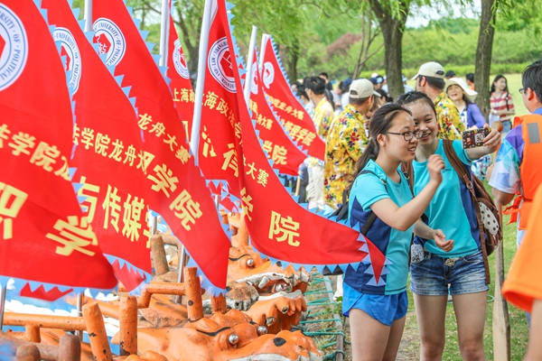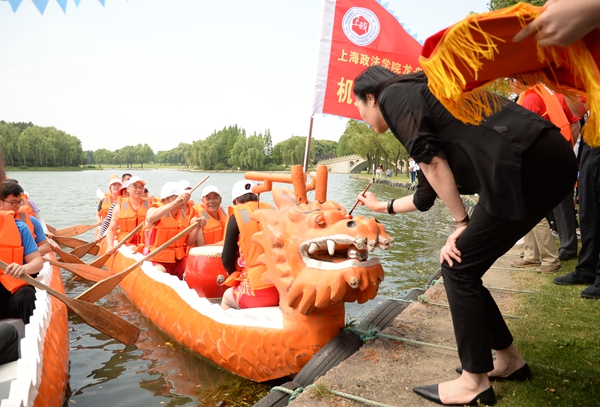 在传统节日端午佳节到来前夕,为弘扬中华优秀传统文化,丰富校园生活,5月20日上午,我校第一届龙舟大赛在东方绿舟龙舟湖举行。由各二级学院、机关工会负责人率领的16支参赛队伍和啦啦队近500名师生共聚东方绿舟,体验了一场精彩纷呈的龙舟大赛。校长刘晓红,党委副书记、副校长周银娥,校工会常务副主席周毅,东方绿舟党总支副书记、副主任朱超,校团委书记陆嵬参加了开幕式并观看了比赛。开幕式由校团委副书记孙留华主持。