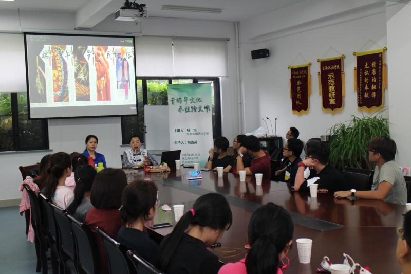 5月23日下午,外国语学院与朱家角镇党工委联合举办了“赏端午文化,承丝路文明”端午文化体验活动。本次活动特邀朱家角镇文化馆杨悦老师主讲,院党总支书记姚善英主持,我院部分学生、国际交流学院留学生代表及部分教师参加此次活动。