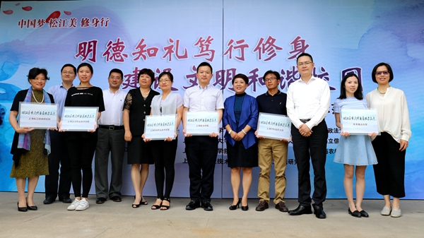 6月15日下午,“明德知礼笃行修身,建设文明和谐校园”——松江区市民修身行动进校园暨第二批市民修身基地示范点授牌仪式在上海视觉艺术学院文物修复学院举行。市文明办副主任宋慧,松江区委常委、宣传部长赵勇,以及松江区文明办、团区委等领导为我校“神奇烘焙坊”等十所高校、研究所组成的11家市民修身基地示范点授牌。