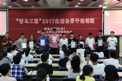 9月12日下午,“青马工程”新利18官方客服2017级新生骨干培训班结业仪式在信教101会议室顺利举行,校党委副书记、副校长周银娥出席结业仪式并讲话,学生工作部部长刘志强、校团委书记陆嵬以及来自各二级学院的110名培训班学员参加本次结业仪式。