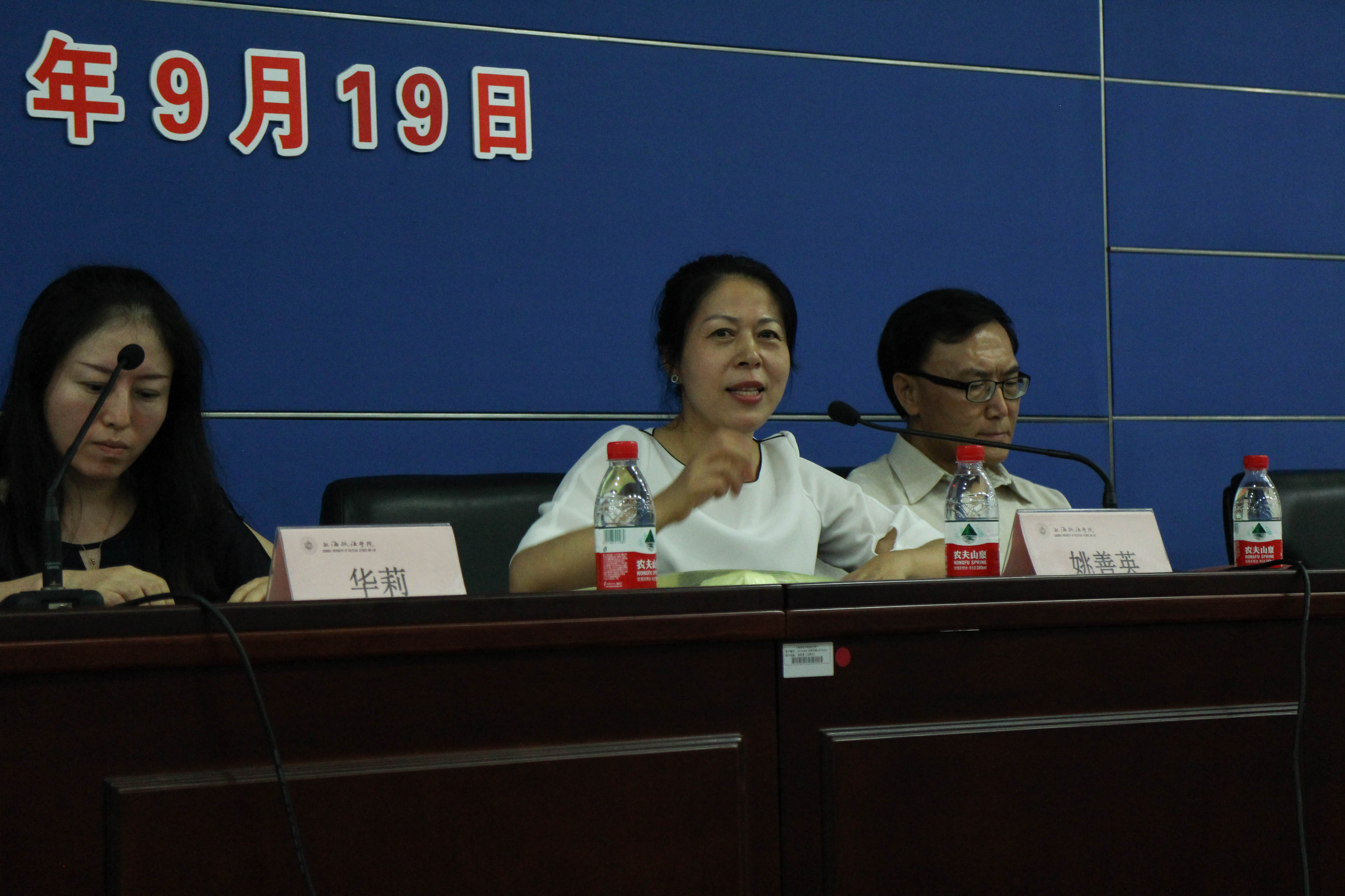 院党总支书记姚善英代表学院欢迎来自全国各地的新同学们加入上政外院大家庭,介绍了学院基本情况,并向同学们介绍了学院院训“中外融通,博学至精”的深刻内涵,同时对各位新生提出了三点希望:一是要明确方向,树立目标,遇到困难和挫折要敢于坚持;二是要养成良好的心态,乐观豁达,包容大气;三是要具有国际化视野,利用互联网的便捷,在学好专业知识的同时,以开放的思维,提高跨文化交际能力。