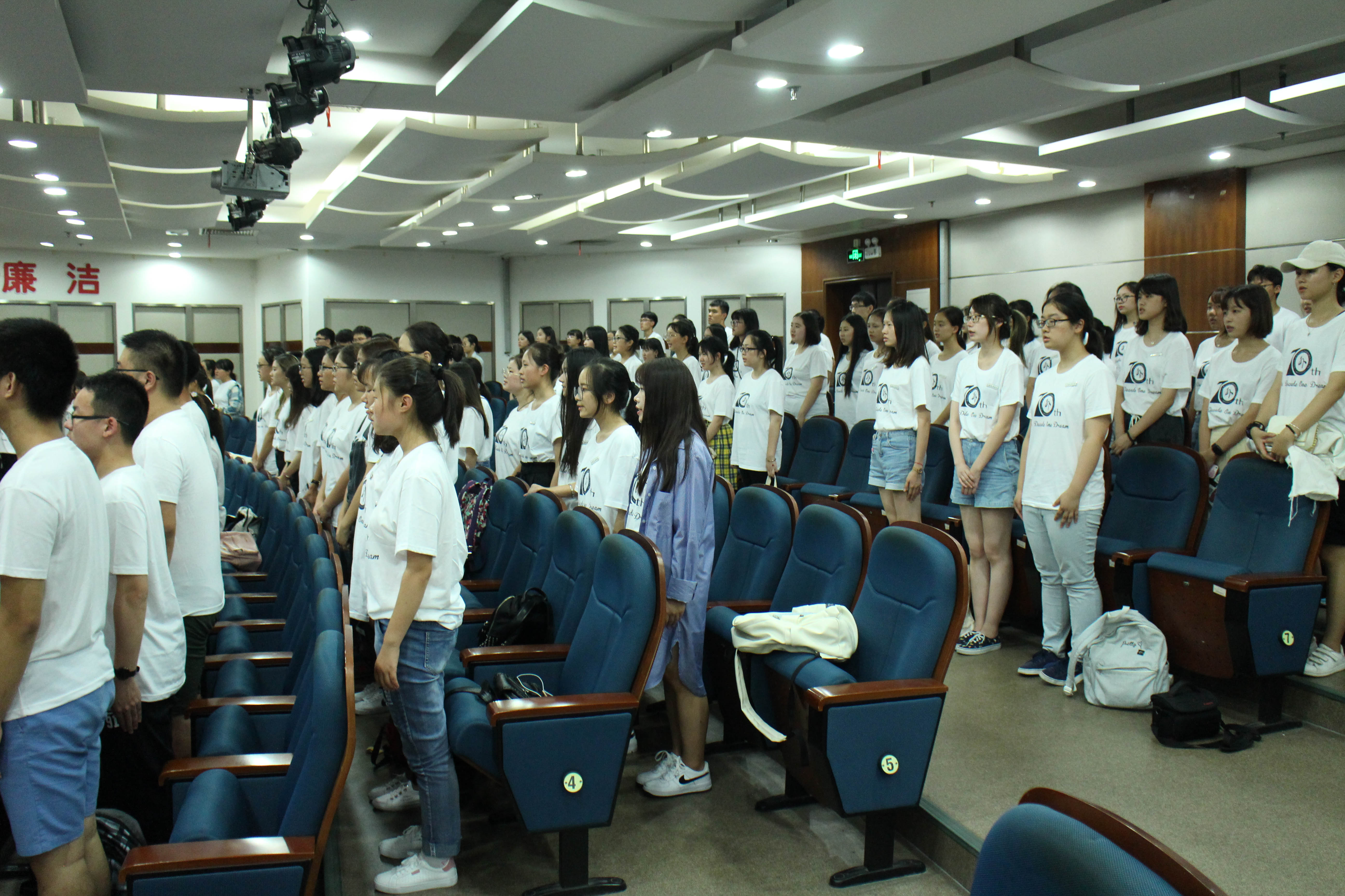 庸夫楼内师生同聚,到处洋溢着青春的朝气。“中外融通、博学至精”,会场内醒目的院训激励着全体新生努力奋发,成为一名优秀的外院学子。