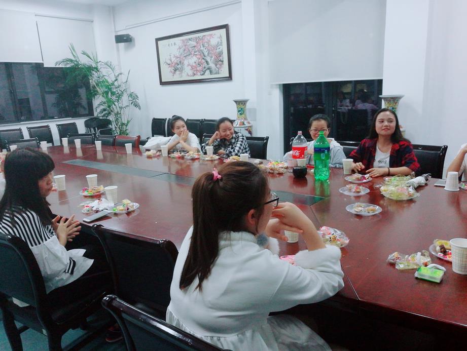 金秋送爽团圆日,丹桂飘香满校园。为使2017级新生更好地融入外院大家庭,感受外院的温暖,传递外院领导真挚的节日问候。10月4日,中国传统节日中秋佳节来临之际,外国语学院在A1-101会议室举行中秋节茶话会活动。本次茶话会由辅导员伍强瑞主持,我院2017级假期留校学生参加此次活动。