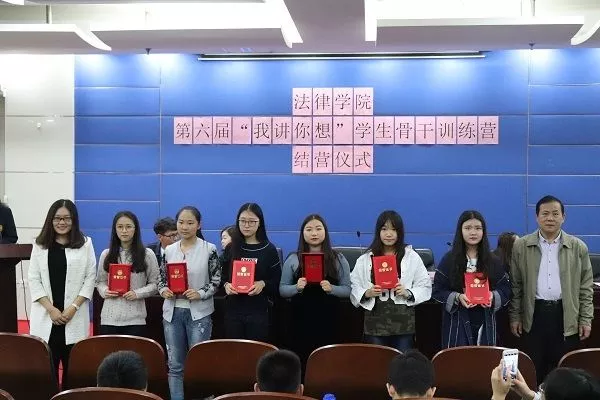 10月17日下午2点,法律学院第六届“我讲你想”学生骨干训练营闭营仪式在信教112举行。法律学院党总支书记文立月,团委书记张露,团学主席团,法律学院团委学生会全体成员,各行政班级代表以及党建、易班、学风、调解法援工作室和社团学生代表。由组织部干事赵宇主持。具体活动内容如下。