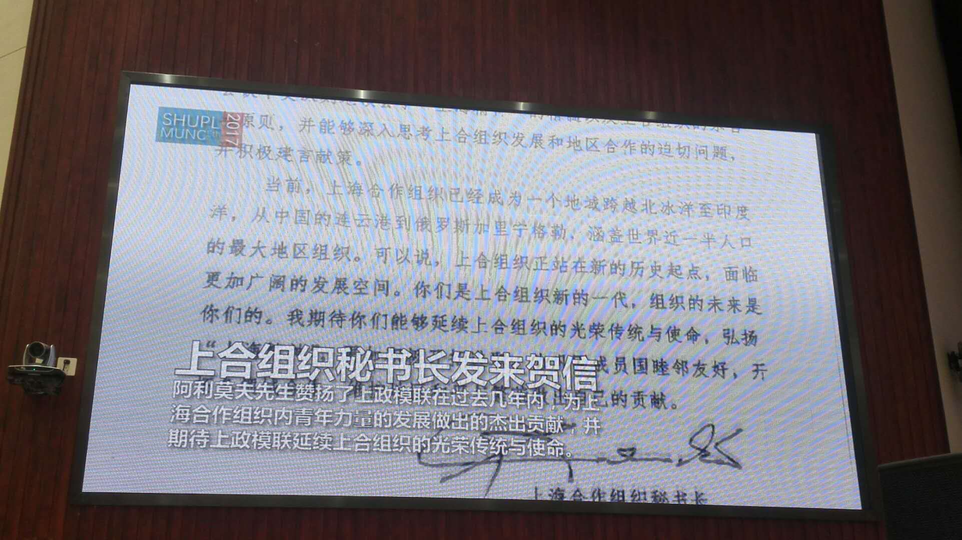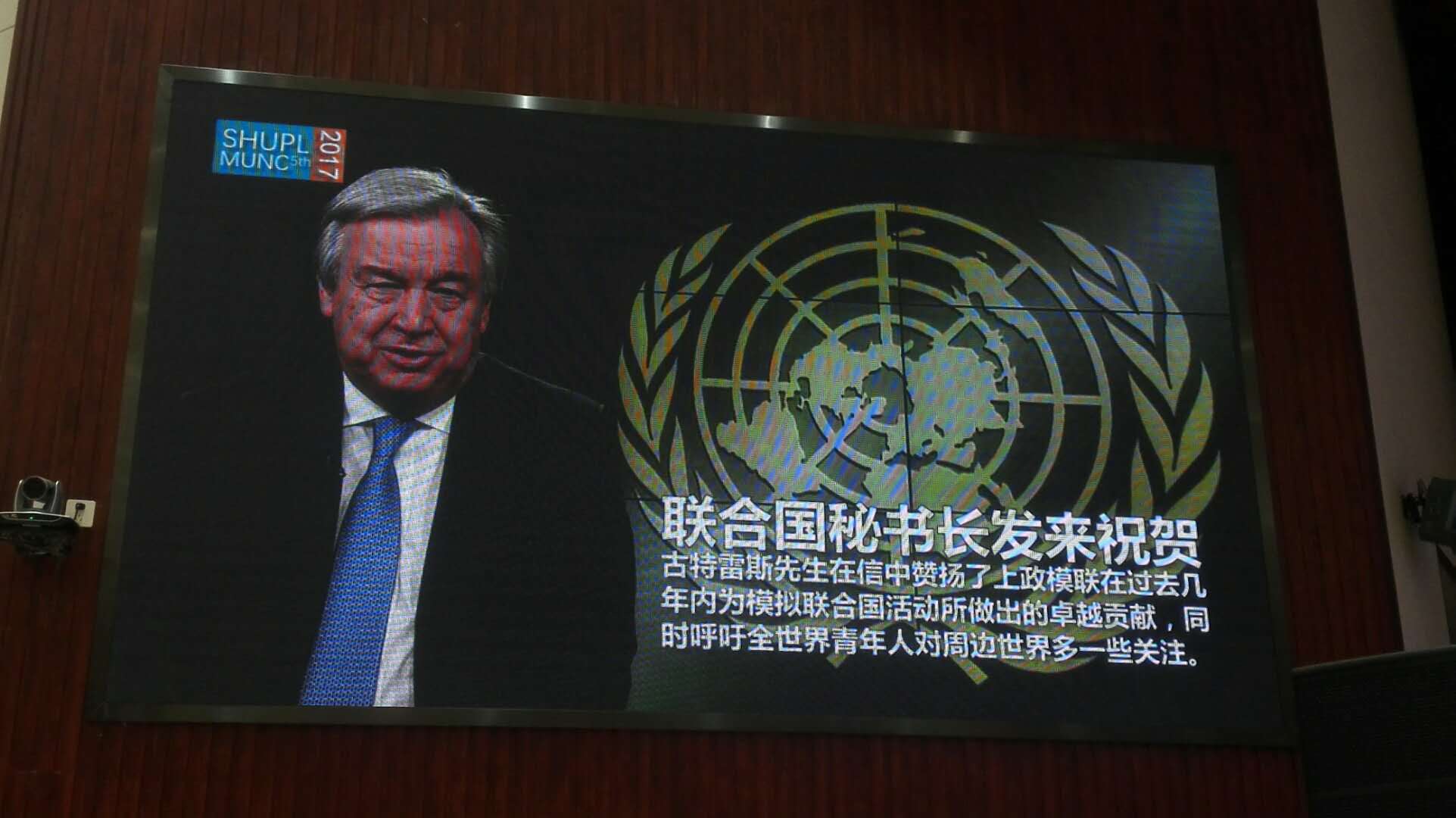 今年11月,在上政模联第五届全国模拟联合国大会召开前夕,协会喜获联合国第九任秘书长安东尼奥·古特雷斯先生的表扬与贺信,紧接着收到了来自上海合作组织秘书长阿利莫夫先生的贺信。信中赞扬了上政模联在过去几年内为模拟联合国活动所做出的卓越贡献,呼吁全世界青年人加强对于周边世界的关注,衷心祝愿第五届新利18官方客服全国模拟联合国大会成功举办。