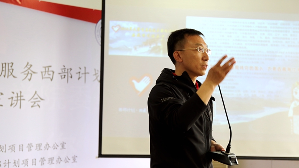 4月24日下午,2018年大学生志愿服务西部计划西藏专项宣讲团在学生活动中心206会议室召开宣讲会,全面介绍西部计划招募政策、流程和实施方案,通过志愿者经验分享,鼓励大学生积极参加西部计划志愿服务活动,为西部建设作出贡献。西部计划西藏专项宣讲团团长、西藏自治区人民医院副院长袁建峰,西部计划西藏专项宣讲团秘书长、团西藏区委青年发展干部梁温馨出席宣讲。志愿者代表刘雷主持宣讲。