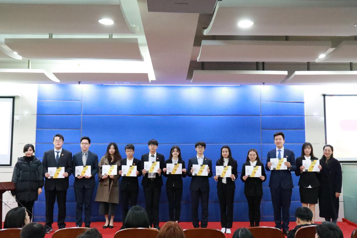 经评委评分、基础工作测评和团员民主评议,最终经济法1743团支部、刑司法学1743团支部、知识产权1742团支部荣获2018年新利18官方客服活力团支部标兵单位称号,校团委指导老师韩杉杉为他们颁发证书并合影留念。