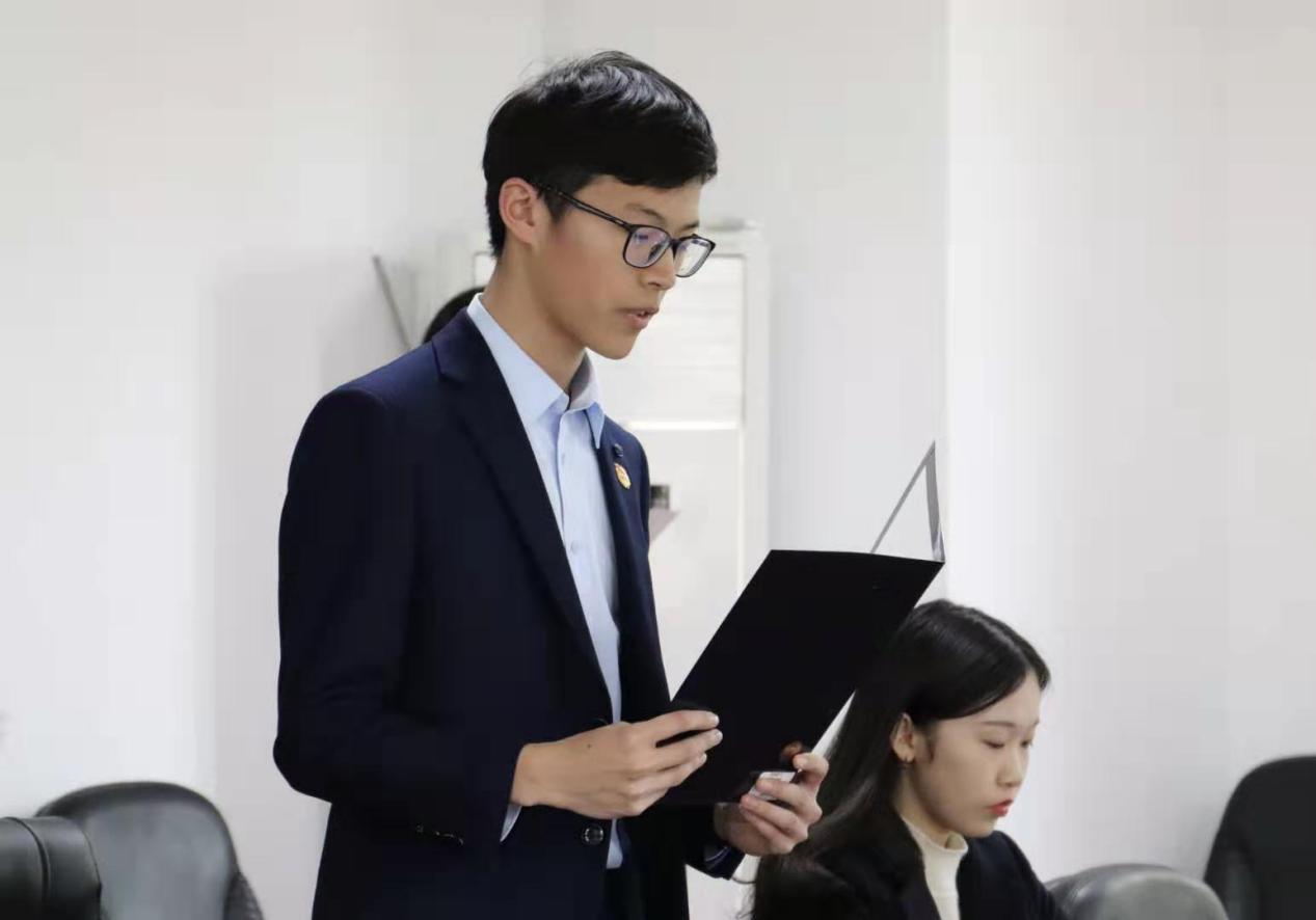主持人宣布入团仪式开始,全体师生起立,奏唱国歌。随后宣布新团员名单,由刑司-警务学院团委书记李洋老师为新团员们颁发团章、团员证以及团徽。紧接着,组织部部长杨铮祺带领新团员们宣誓。鲜艳的团旗下,新团员举起右手庄严宣誓:“我志愿加入中国共产主义青年团,坚决拥护中国共产党的领导,遵守团的章程,为共产主义事业而奋斗。”青春誓言,高昂雄浑,表达了同学们对共青团组织的无限向往和为组织增光添彩的豪迈激情。随后入团介绍人杨铮祺宣读了《团章》中有关团员权利和义务的条款。