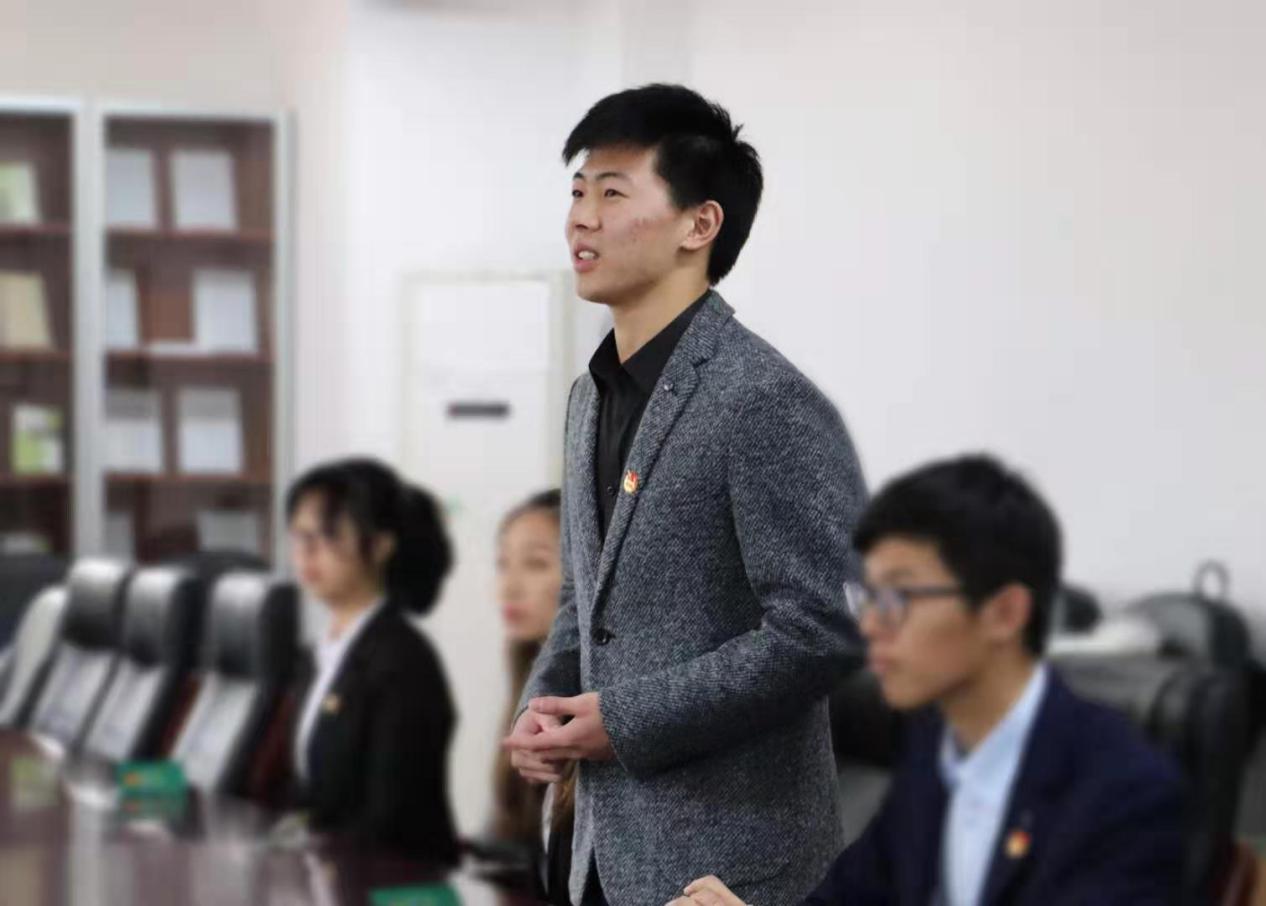 在庄严的宣誓之后,新团员代表唐皓瑀同学发言。他认为,加入了共青团意味着自己的肩上多了一份责任,要时刻以身作则,起到带头作用,并且简述了自己对于团的认识。同时,他认为在之后自己应当认真学习、作风扎实、品德高尚。自信人生两百年,会当击水三千里。在听完新团员代表的发言后,团员代表周殷莹提出,团员不仅仅是一个形式,更应当是工作和学习上鞭策自己的动力,要承担起属于自己和团员的责任。