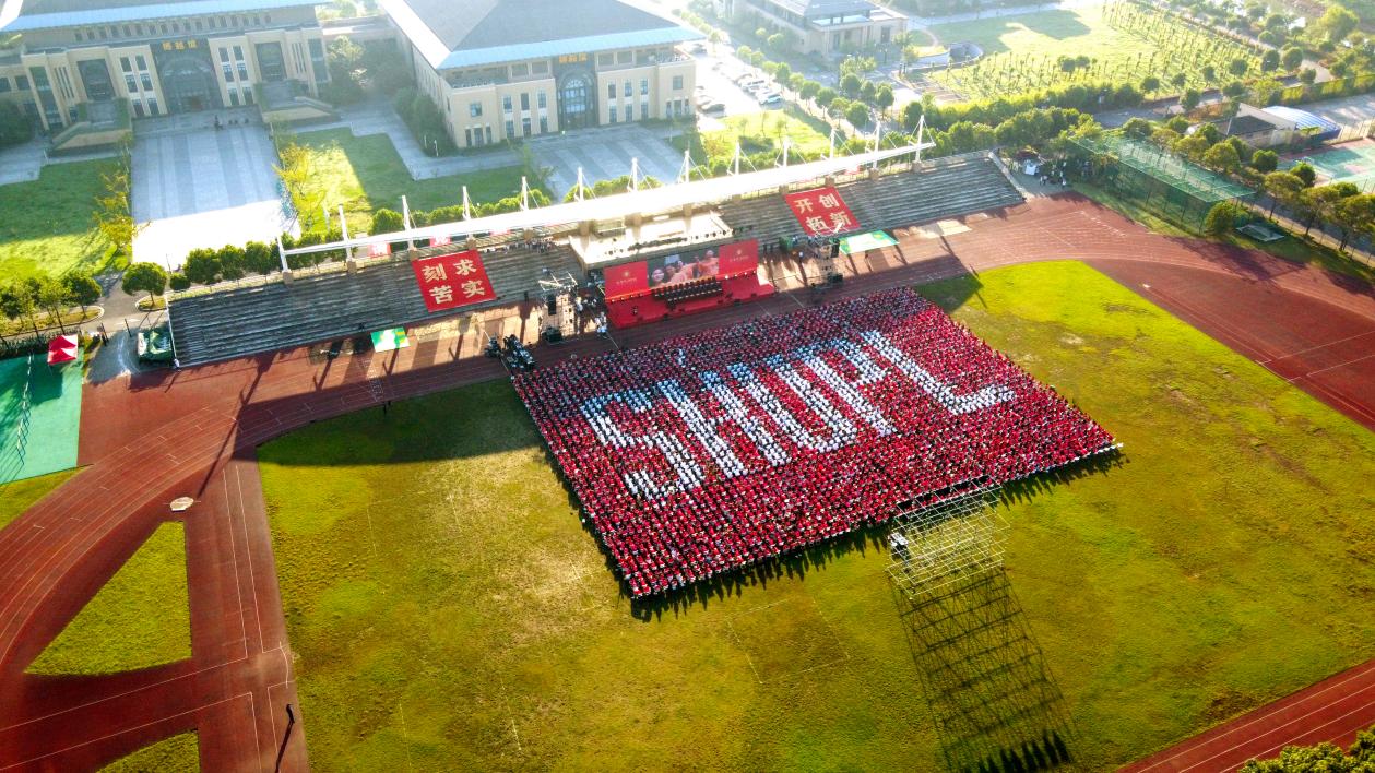 佘山脚下汇薪火,野马浜中聚新才。9月23日清晨,我校2021级新生开学典礼在学校体育场隆重举行。校领导夏小和、刘晓红、潘牧天、刘刚、胡继灵、郑少华,以及各二级学院和相关职能部门负责人、教师代表出席典礼。近3000名新生整齐着装,共同以鲜艳活力的红为底色、纯粹无垢的白作墨色,拼出代表学校的“SHUPL”。