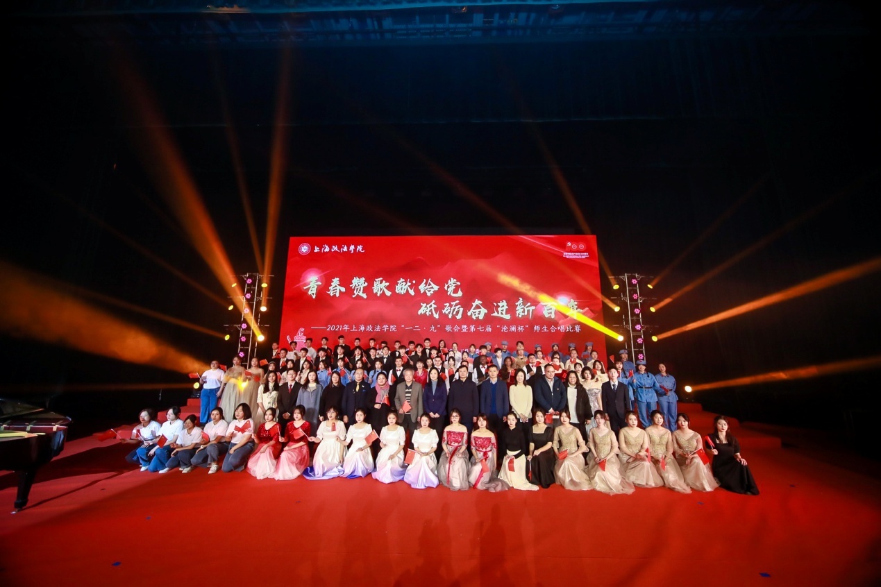 为致敬百年党史,本次歌会的上场顺序划分为十个历史年代,国际法学院代表队《问·寻》、语言文化代表队《我爱你,那水孕育的中国》、马克思主义学院—人工智能法学院联合代表队《东方中国红》、经济管理学院代表队《致敬!最可爱的人》、刑事司法学院代表队《我们走在大路上》、纪录片学院代表队《红星组曲》、法律学院代表队《追寻》、警务学院代表队《最美的今宵》、政府管理学院代表队《绒花》及经济法学院代表队《再一次出发》相继唱响,为全场观众呈现了一场精心编排的视听盛宴,也让大家感受到歌曲背后的家国情怀和美好希冀。国际交流学院师生用多国语言献唱的《我和我的祖国》,为歌会增添了一抹亮色。演出在全场大合唱《没有共产党就没有新中国》中圆满结束。