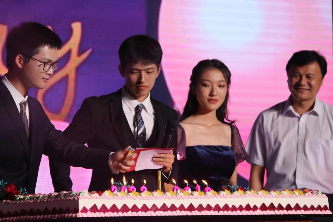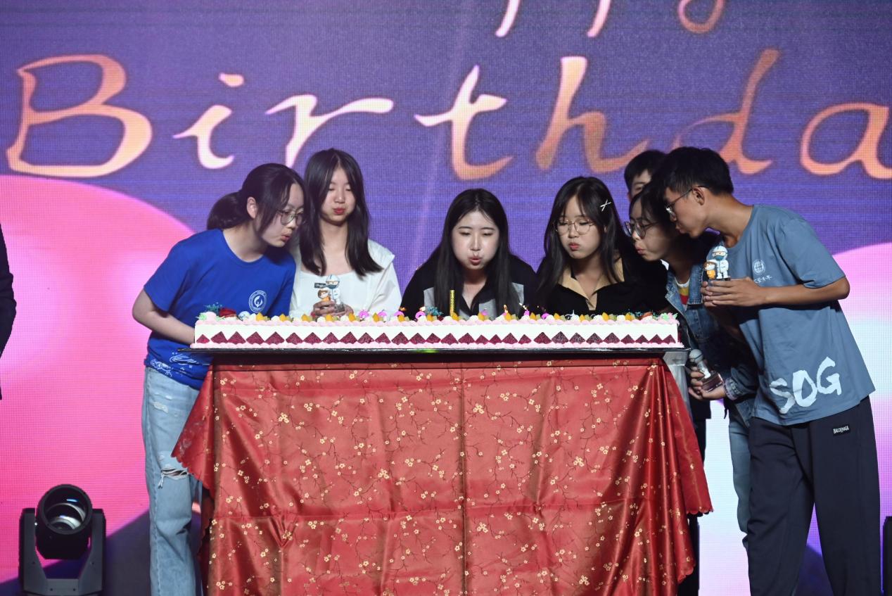 晚会上,刘刚为9月13、14日过生日的新生代表送上蛋糕,伴随着“寿星”家长们的惊喜寄语视频,全场同学齐唱生日歌为他们送上真挚美好的祝福,这是来自上政大家庭的温暖。