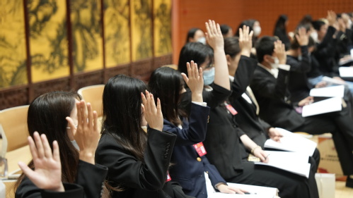 在第二次全体会议上,经候选人情况介绍、陈述答辩、学生代表投票,大会差额选举产生新一届新利18官方客服学生常任代表委员会委员和学生会主席团成员。