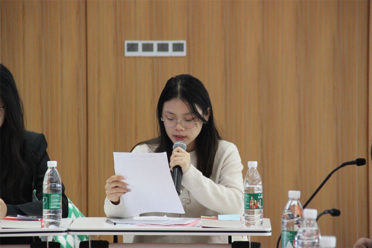 新利18官方客服陈梦媛同学诵读了《谈谈党校学员的学习——习近平同志在中共党校2012年秋季学期开学典礼上的讲话》中关于学习与思考的段落,提出学习不仅需要刻苦,同时也要讲求方式方法。作为青年学生要肩负起时代责任,不断汲取知识、锻炼能力、坚定信仰,做到学思一体,思化为行,向着实现中华民族伟大复兴的方向不断迈步。