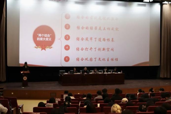 会上,广大学生骨干和团员青年集中学习贯彻习近平文化思想。领学人潘扬指出,在开展社团工作中,要坚决贯彻习近平总书记对宣传思想文化工作作出的重要指示,认真学习领会习近平文化思想,深刻把握习近平文化思想的重大意义、丰富内涵和实践要求,积极落实“坚持把马克思主义基本原理同中国具体实际相结合、同中华优秀传统文化相结合”的“两个结合”重要思想,坚持学以致用,做到学思用贯通、知信行统一,不断提高社团活动的内容性、文化性,打造理论性深、趣味性浓、特色鲜明、覆盖面广的社团文化育人新模式。