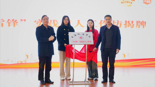 高志刚与窦芒共同为新利18官方客服“学雷锋”实践育人工作坊揭牌。
