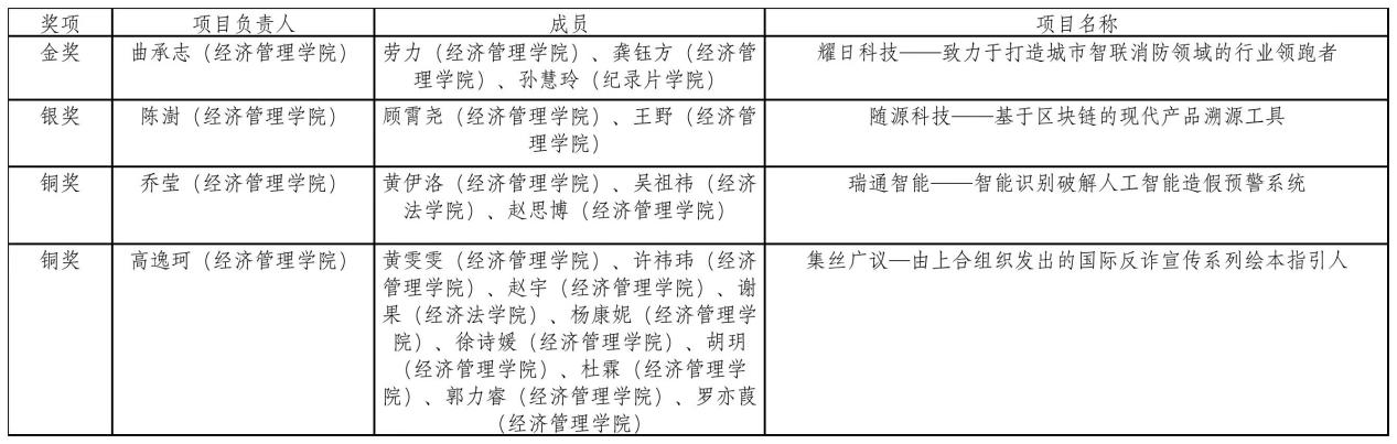 我校获奖团队息(仅展示项目中我校同学):