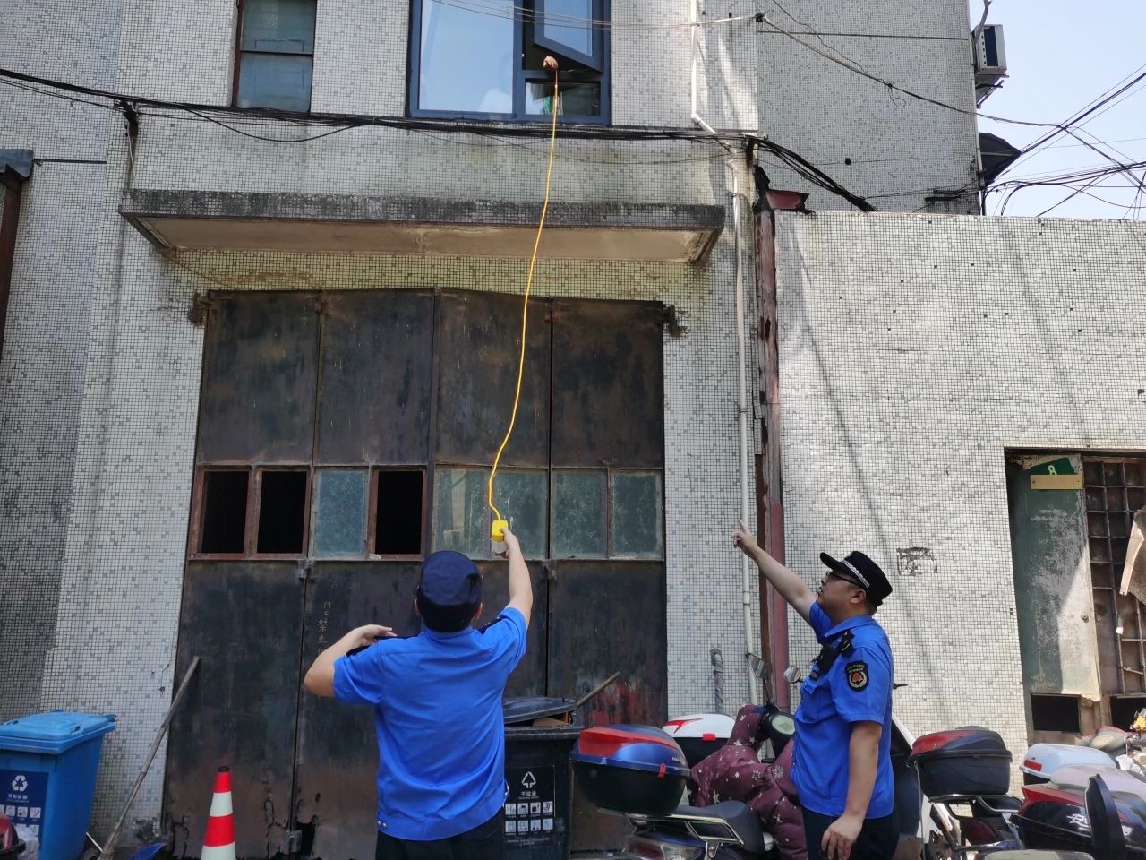 上海城管检查电瓶车飞线充电情况