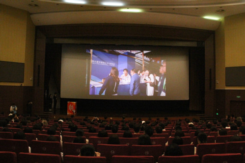 校团委胡飞宇老师从广泛宣传动员、公开组织招募、积极组织参与培训三个方面介绍我校第七届进博会志愿者相关组织招募工作情况。